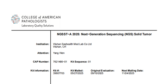 国际认证|康测医学通过CAP NGSST-A 2025能力测评项目
