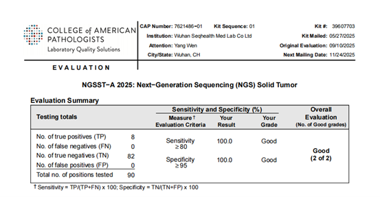 近日,美国病理学家协会(College of American Pathologists,CAP)公布了2025年上半年NGSST-A(Next-Generation Sequencing Solid Tumor,实体瘤高通量测序)能力验证评估报告,康测医学以全“Good”的优异成绩顺利通过,这一成绩的获得不仅体现了康测医学肿瘤NGS检测能力的稳定性和可靠性,也印证了康测医学的实验室质量管理体系获得国际合规性的认可。