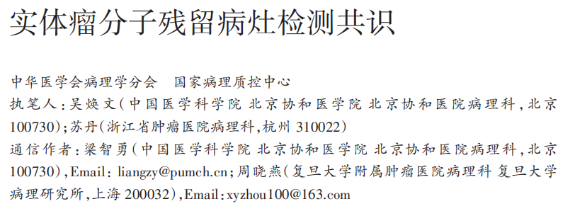 2024年11月,《中华病理学杂志》刊发了最新的关于实体瘤MRD的共识。该共识由北京协和医院吴焕文教授和浙江省肿瘤医院苏丹教授执笔,北京协和医院梁智勇教授和复旦大学附属肿瘤医院周晓燕教授为通讯作者。