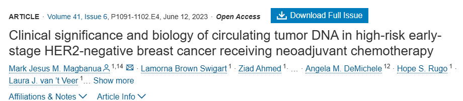 一项前瞻性研究(I‑SPY2)研究了激素受体阳性、HER2 阳性、三阴性等乳腺癌三个亚型,结果一致表明,MRD阴性患者具有更好的预后,而MRD阳性患者需要强化治疗以改善生存。这显示出一定的辅助治疗决策价值。
