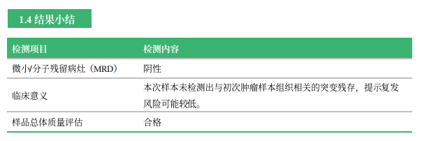 实体瘤 MRD检测报告应包含以下内容: